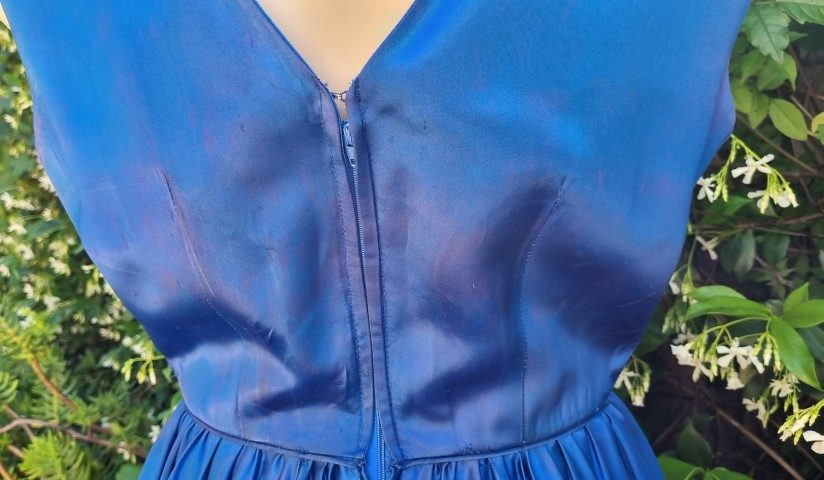 1950’s Cocktail frock, electric blue, satin, by ‘Kiva Creations’, size 10