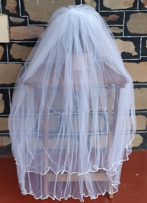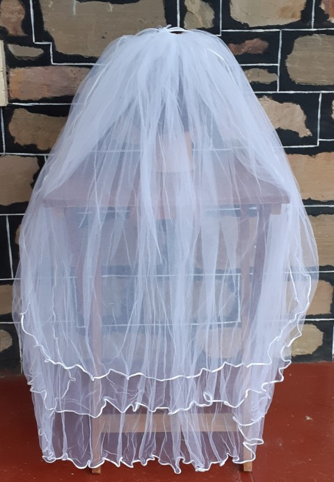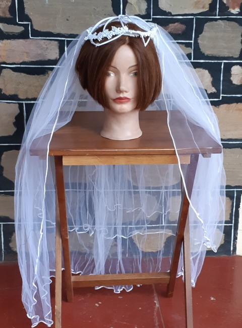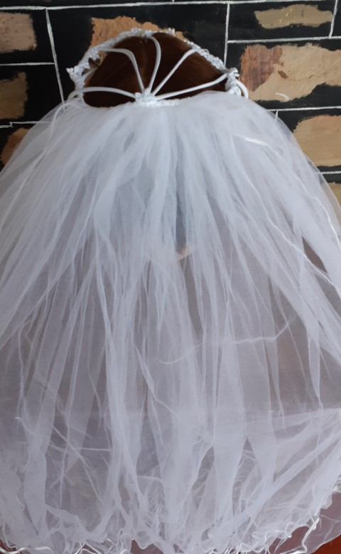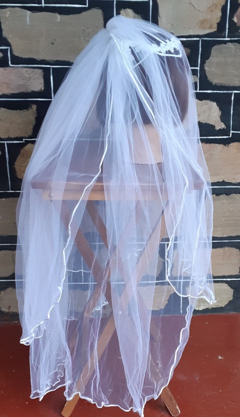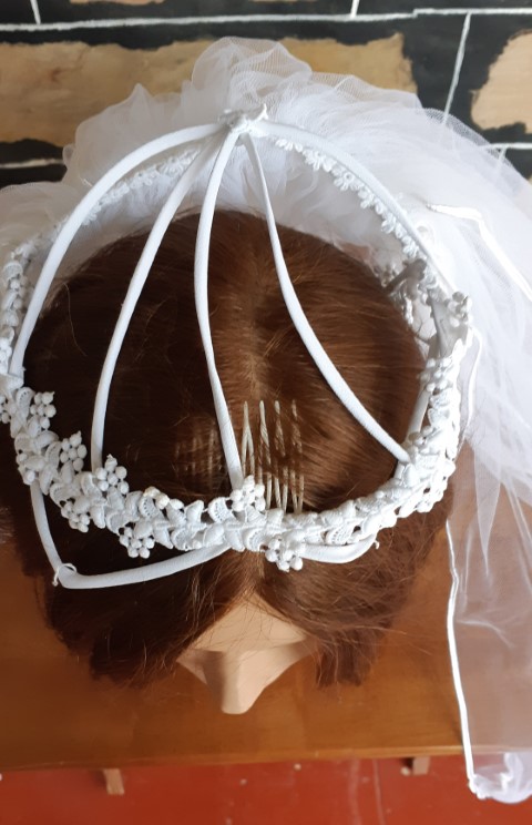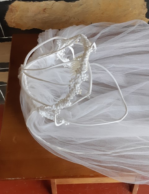 The veil is also in excellent condition and freshly laundered. 3 layers of tulle, the total length is 92cm.