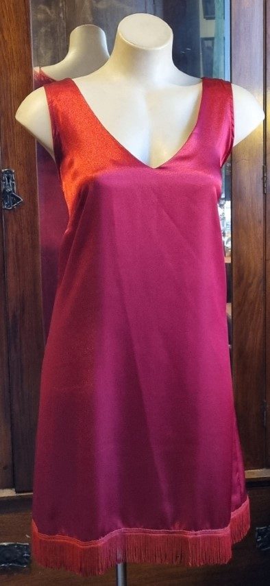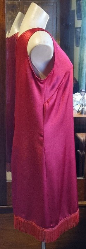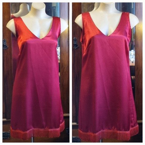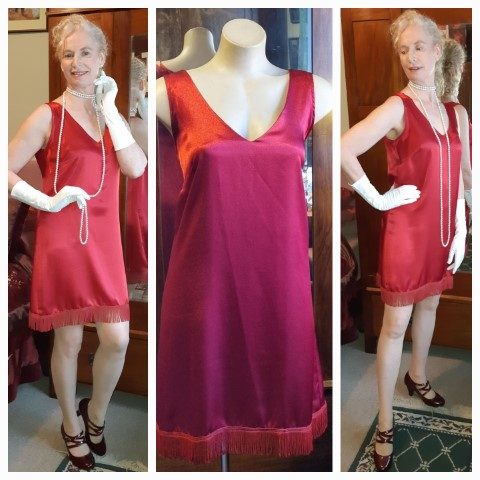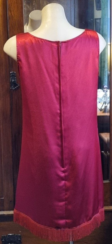 Flapper Dress, Satin Polyester, Cherry Red, Handmade, size S-M
