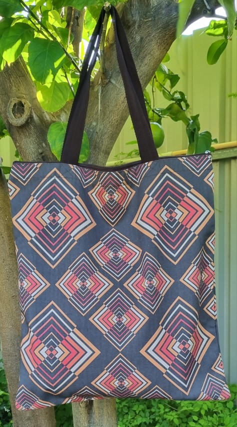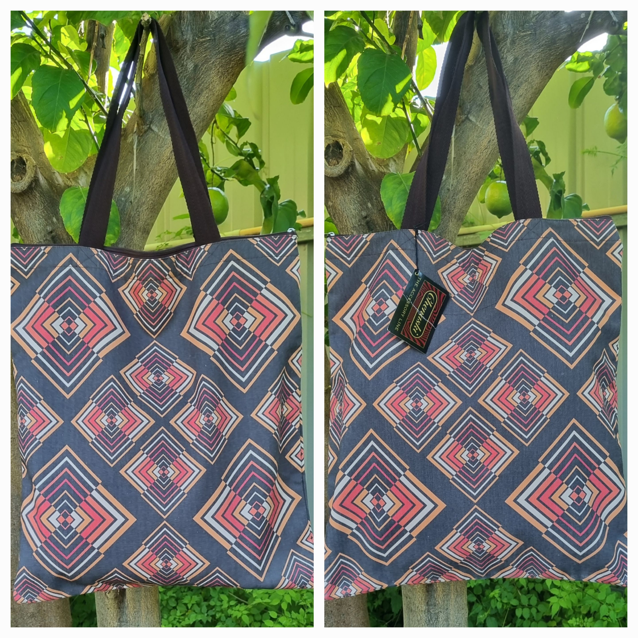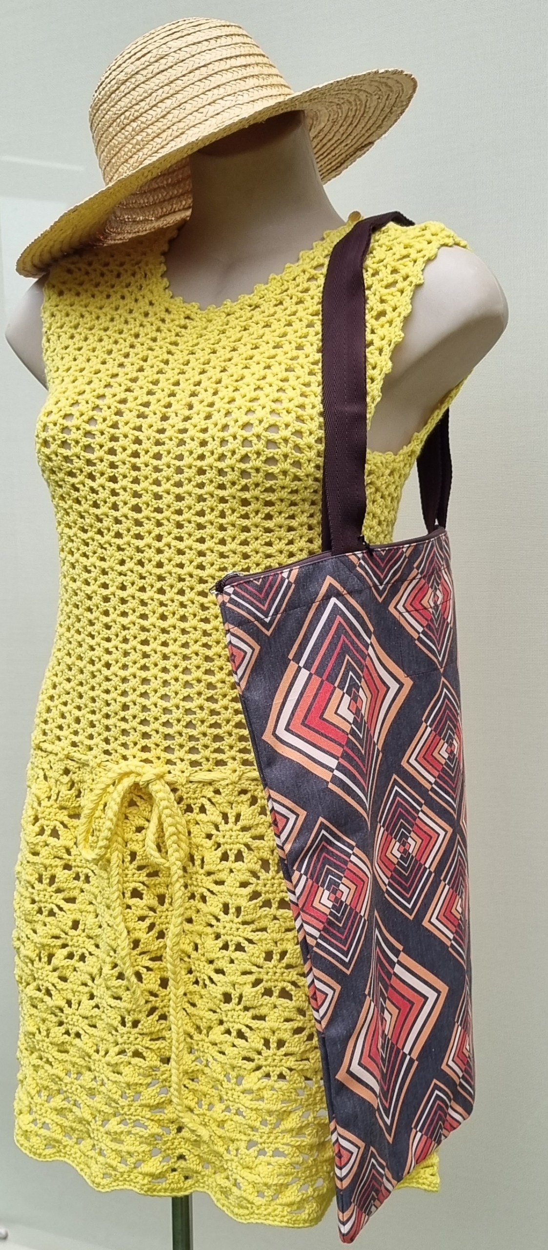 Tote/beach bag, Brown Retro Print, cotton, by “Chenaski of Germany new.
